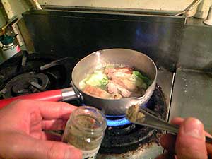 2. 鍋に鶏肉と、鶏肉がちょうど浸かる位の水を入れて、火にかける。