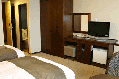 7階〜9階はホテル客室となっています。露天風呂付きの豪華な部屋からスタンダードな洋室まで、いろいろな種類の部屋が用意されています。