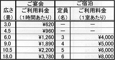 ※宿泊は、原則として宴会利用とセットで受け付けています。(宴会・宿泊の最終受付は、午後9時、ラストオーダーは午後10時)