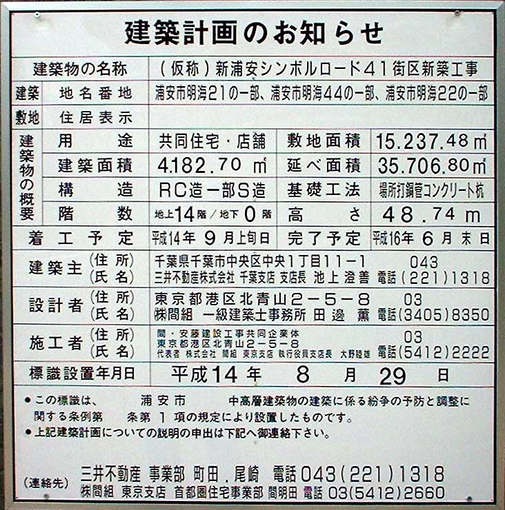 どうもベイシティ新浦安の海側に204戸のマンションができるようです。建築主は、伊藤忠都市開発と東急不動産です。