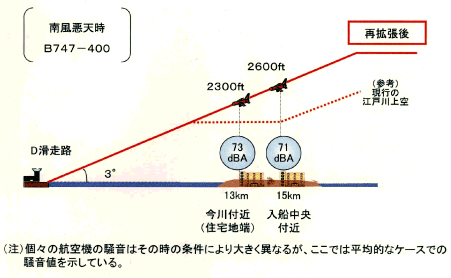 ここでは、平成1 6 年2月9日(月) 18 : 30 、 赤坂プリンスホテルにて行われた「第4回羽田空港再拡張事業に関する協議会」議事録に、掲載されている入船、今川を例にした図面を紹介したいと思います。