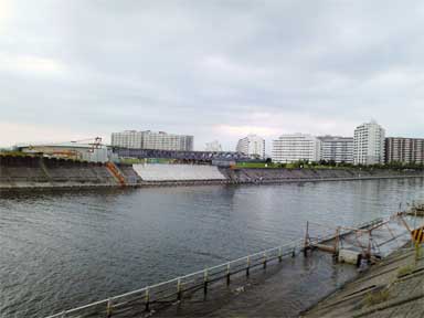 当初は、今年完成で進められていた境川河口、パークウエイにかかる橋ですが若干工事が遅れたようですが、いよいよ橋桁が見られるところまで工事が進みました。