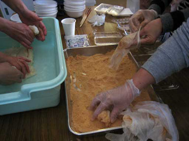 メニューも豊富で、お汁粉、からみ餅、きなこ餅、磯辺巻きなど定番のお餅に加え、ふかした餅米に塩昆布を加えておこわを作ったり、餅米にふりかけをかけてみたりと、様々な餅米料理が振る舞われました。