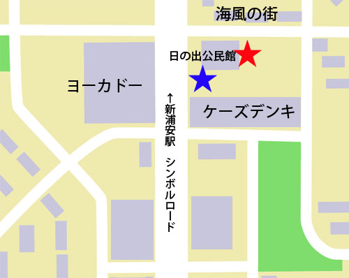 - 消防署の計画用地は日の出公民館隣接の土地。(下図の赤い★)