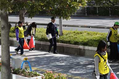今回は、NPO浦安防犯ネットと一緒に自転車盗難防止をアピールしながらのゴミ拾いとなりました。