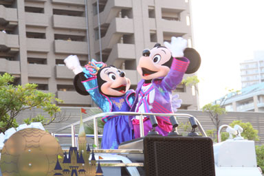 第1部「オープニングパレード」は東海大浦安高校や学館浦安高校の吹奏楽部、地元のダンスチームなどがパレード。東京ディズニーリゾートのキャラクターも応援に駆け付けました。