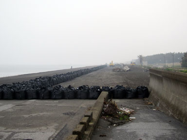 2011年11月6日に、震災で壊れた護岸と堤防の保守工事現場を見に行ってみました。