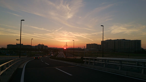 空の広い新浦安では、この季節の夕焼けはとても綺麗です。