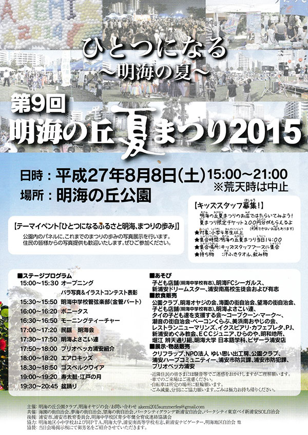 2015年8月8日に、明海の丘公園にて「明海の丘夏まつり2015」が開催されます。