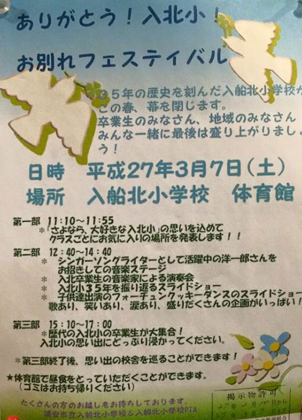2015年3月7日に「ありがとう!入北小!お別れフェスティバル」が開催されました。