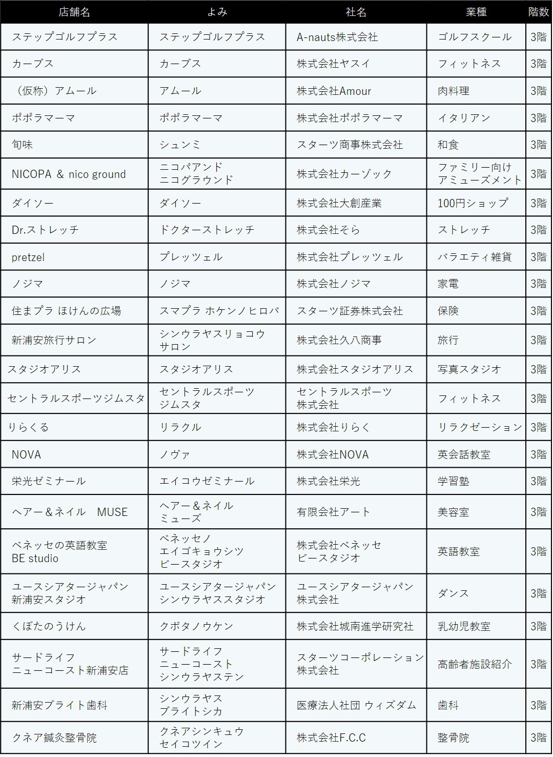 2018年11月22日(木)に、NEW COAST SHIN-URAYASU(ニューコースト新浦安)の3階店舗がオープンします。