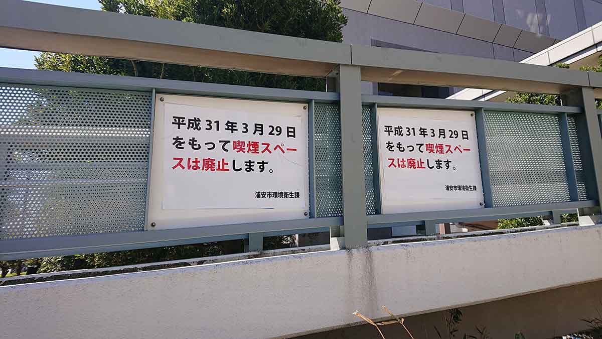 2019年3月29日に新浦安北口の喫煙スペース(オリエンタルホテルとブライトンホテルの間)が廃止となります。