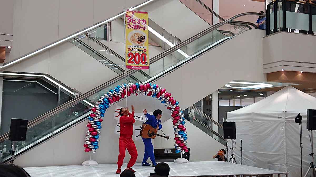昨年オープンして以来初めての大きなイベントとなった今回のライブですが、かつてないほど多い来場者の数でした。会場のセンターコートだけで無く、各階のセンターコートを見渡せる部分にも空きがないほどでした。