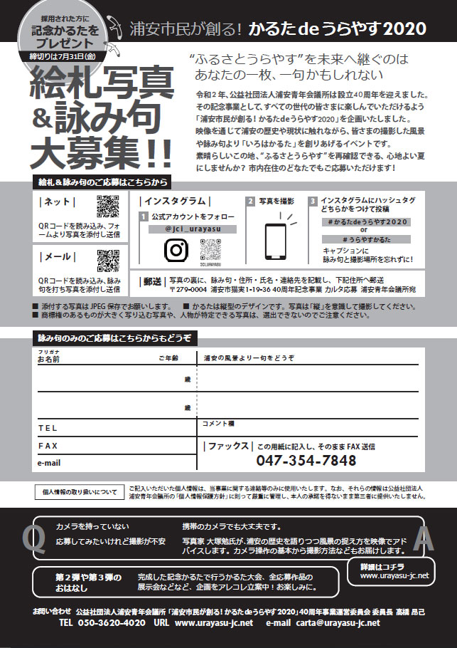 浦安青年会議所のホームページより専用フォームよろ応募できます。