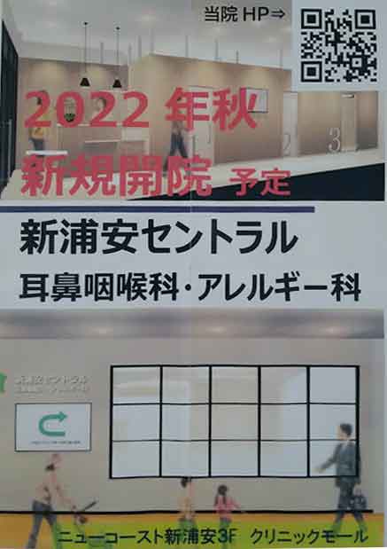 2022年10月1日にニューコースト新浦安に、「新浦安セントラル耳鼻咽喉科・アレルギー科」がオープンします。