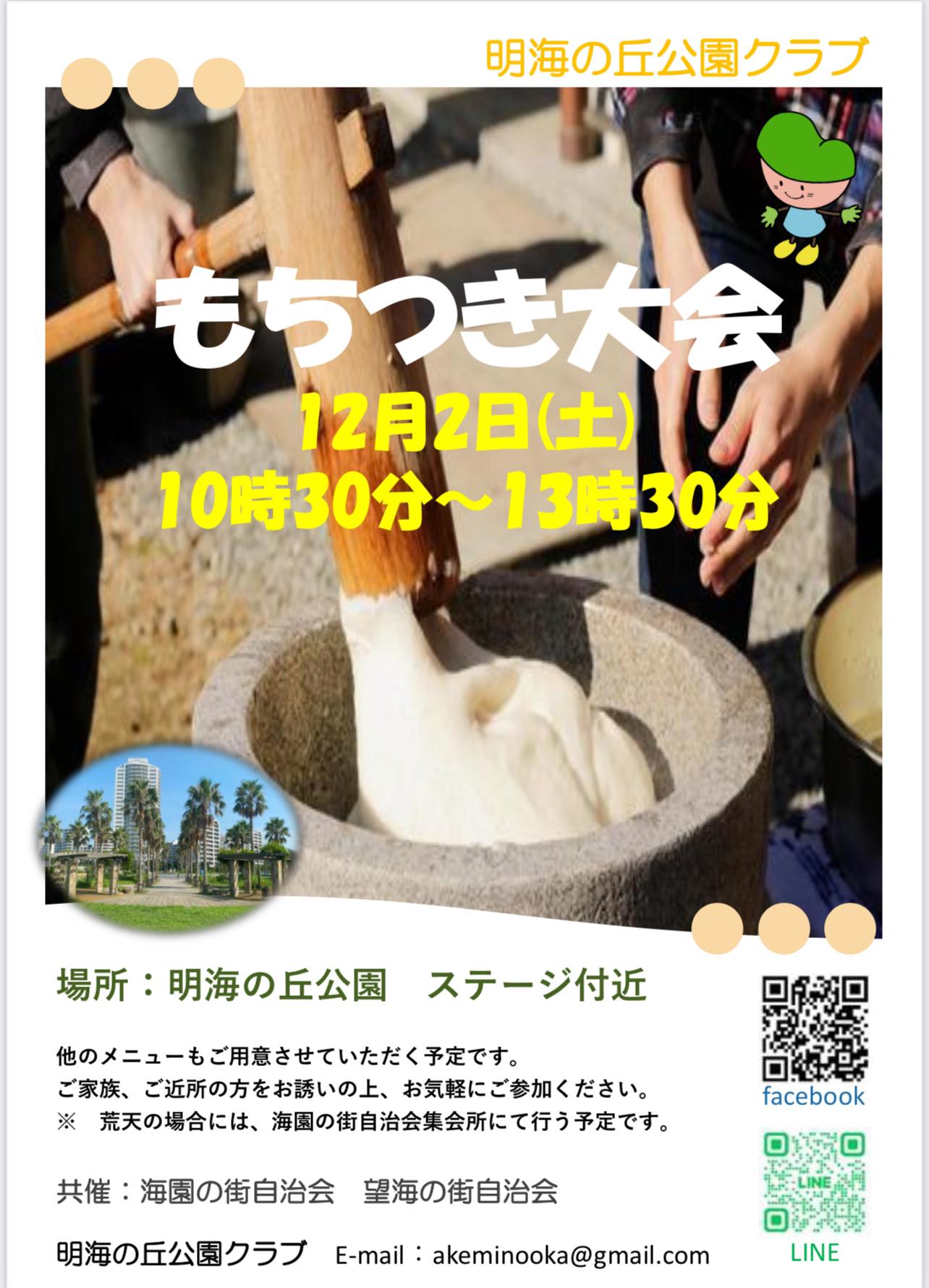 2023年12月2日に明海の丘公園クラブ主催の餅つき大会が開催されました。