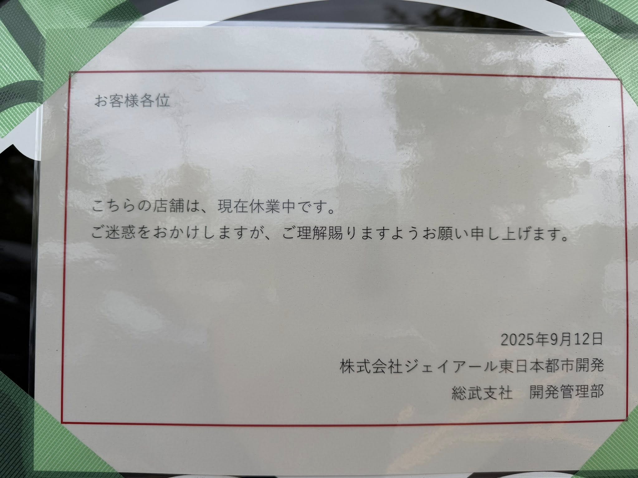 2025年9月20日現在、鉄鋼団地横の鶏白湯ラーメンの美富が休業となっています。