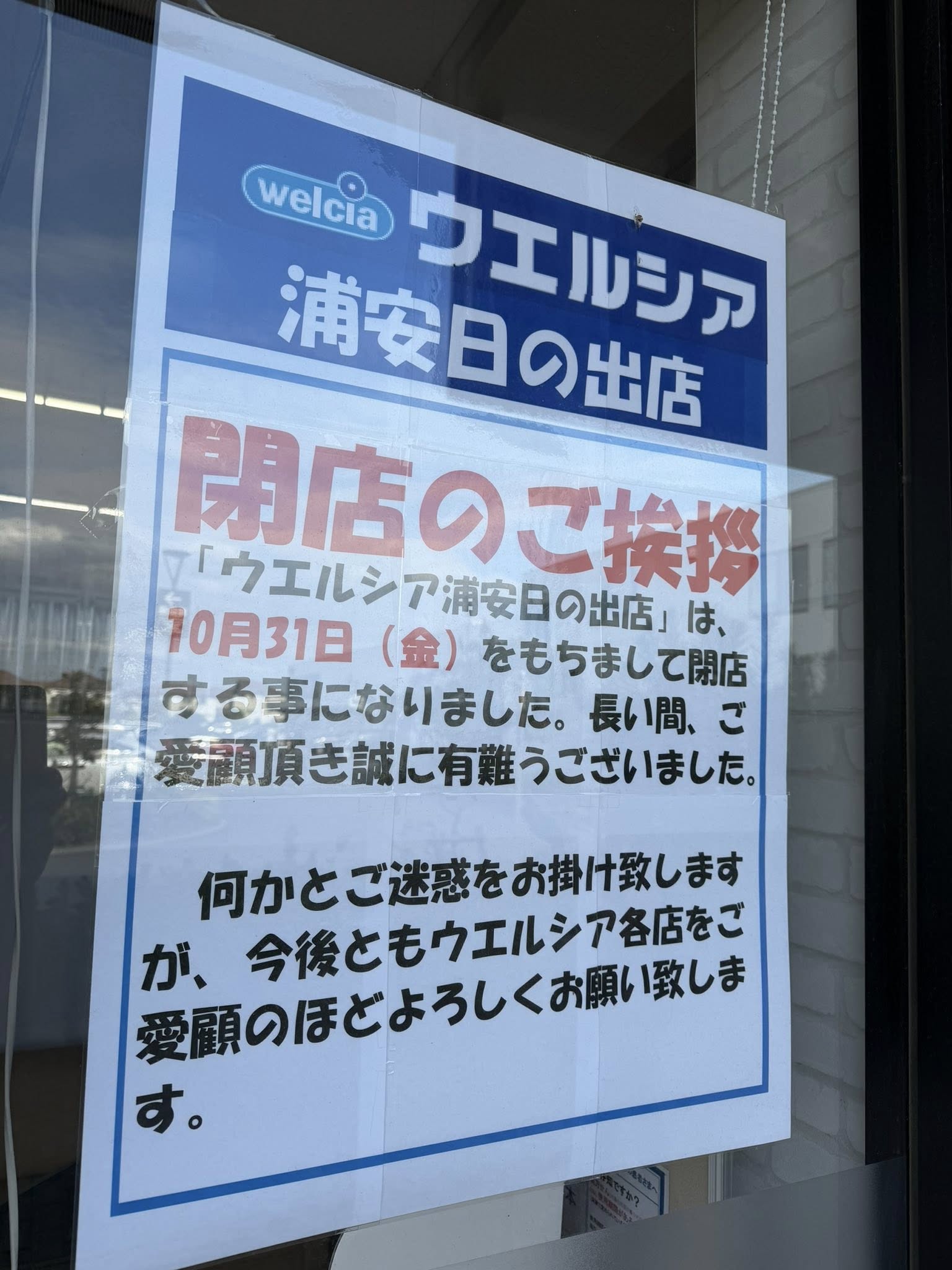 2025年10月30日に日の出のウエルシア 浦安日の出店が閉店になります。